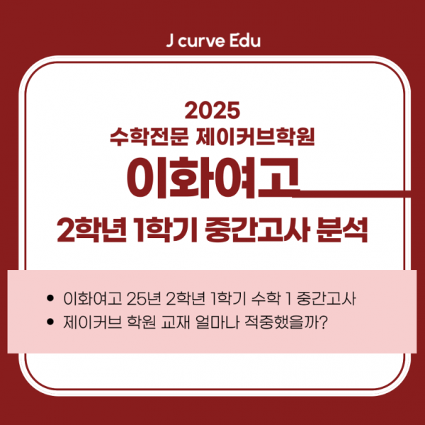부교재 변형 원리를 꿰뚫는 분석력으로 내신 상위권을 선점하는 수학전문 제이커브학원은 2025학년도 이화여고 2학년 1학기 수학1 중간고사를 정밀하게 해부했습니다. 이번 시험에서 부교재인 수능특강의 출제 비중이 압도적이었음을 확인하고, 단순 풀이를 넘어 변형의 원리를 파고드는 3단계 심화 학습법의 효용성을 다시 한번 입증했습니다.