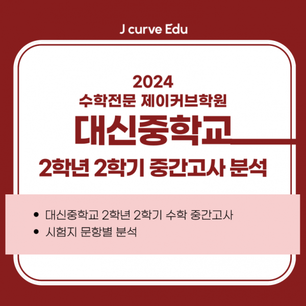 기초부터 심화까지 빈틈없는 분석력으로 성적의 정점을 찍는 수학전문 제이커브학원은 2025학년도 대신중학교 2학년 2학기 수학 중간고사를 철저하게 해부했습니다. 이번 시험이 쎈 B단계 수준의 유형별 이해도를 묻는 중간 난이도 문항에 집중되었습니다. 제이커브 중등강사진의 지도 아래 진행된 4주간의 체계적인 커리큘럼은 600문항에 달하는 자체 교재와 대치·목동 기출을 포함한 심화 훈련으로 구성되어, 실제 시험에 출제된 20문항을 단 하나도 빠짐없이 100% 적중시키는 쾌거를 이뤘습니다.